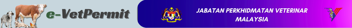 Selamat datang ke sistem eVetPermit 3.0. Sistem akan mula digunakan pada 3 Ogos 2025. Dapatkan maklumat lanjut di Pejabat Perkhidmatan Veterinar Daerah/Jajahan atau Jabatan Perkhidmatan Veterinar berdekatan anda!